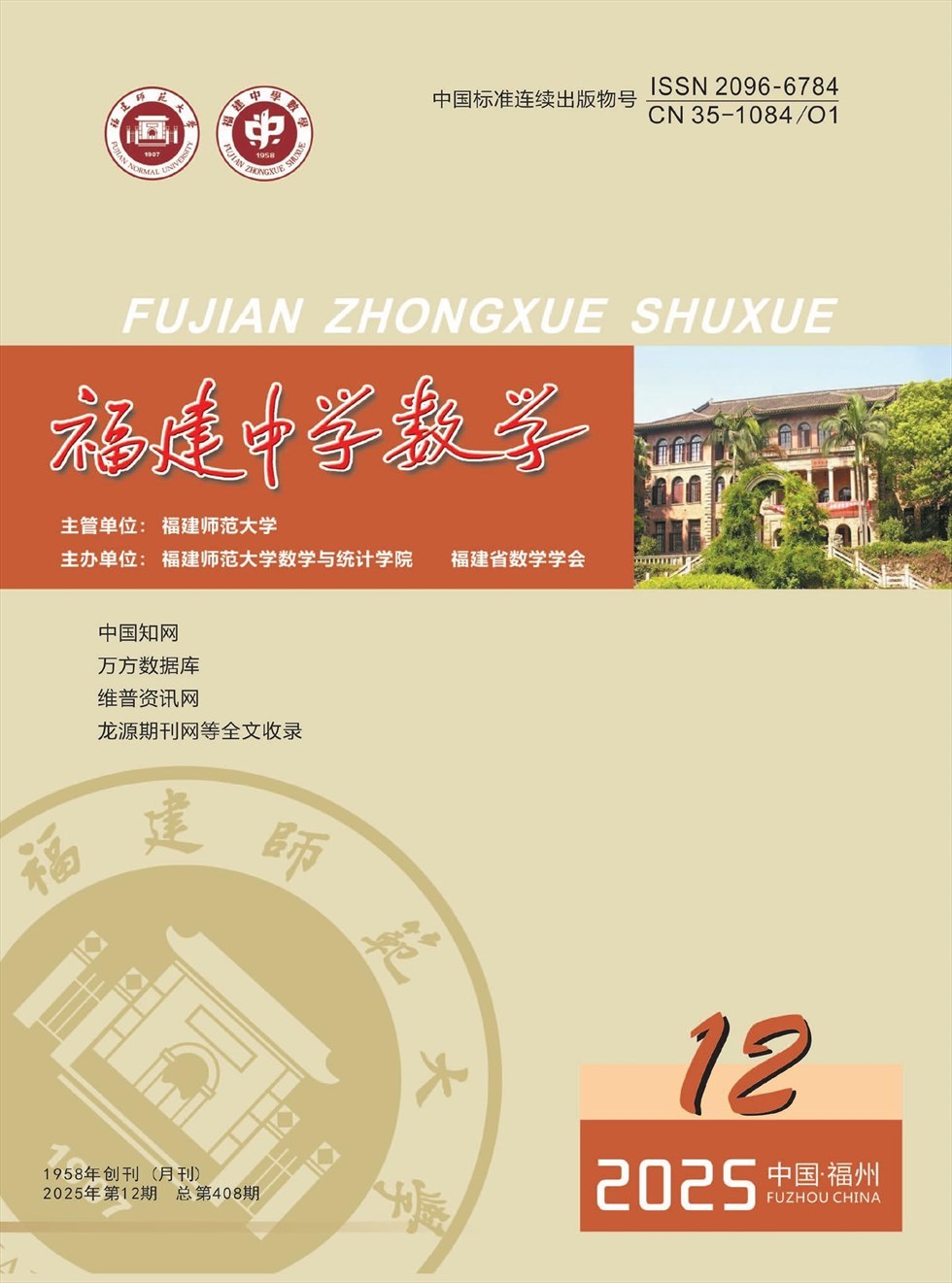 《福建中学数学》是面向中学数学教学的普及性的学术性期刊,她的办刊宗旨是开展中学数学教学理论研究和实践探索,介绍数学教学改革的新理论、新成果、新经验、交流数学教学的经验;探索初等数学,交流研究成果,