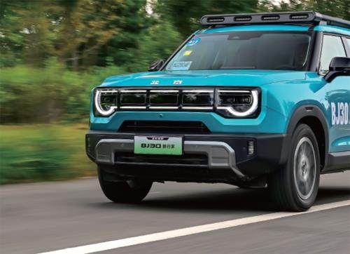 强身健体三件套的上身让BJ30更具野性的味道 BJ30旅行家硬派的方盒子外表,以及车身尺寸参数都没变。外层带玻璃罩覆盖的五孔星环灯带、粗壮的C柱、撞色尾门很有辨识度。 变化在于19英寸亮面轮圈除了入门版外全系标配。像车顶行李架、侧窗小爬梯、带灯语的小书包,这些提升颜值的“强身健体三件套” 以前老款车型上也是没有的。4730mm车长,2820mm轴距的BJ30旅行家定位紧凑型SUV,却比中型