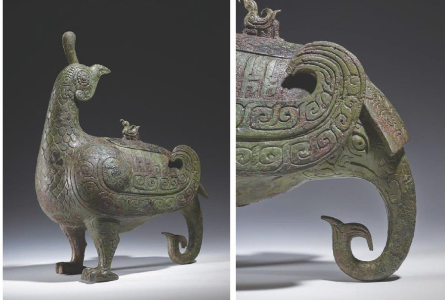 【摘要凤鸟主题的器形和纹饰常见于西周青铜器,晋侯鸟尊是为典型。结合文献和考古资料对晋侯鸟尊造型重新释读,认为晋侯鸟尊回眸的凤鸟代表周王室,背上仰望的小鸟代表晋国。大鸟与小鸟的状态,显示着周王室与晋国之间的关系。甲骨文及考古资料显示,象与商人关系密切,象文化是商人的文化之一。鸟尊尾部塑造的长鼻内卷之象,则是商人臣服周人的写照。晋侯鸟尊为祭祀重器,其造型及纹饰不仅用于装饰,更多地体现着时人的观念与思想。
