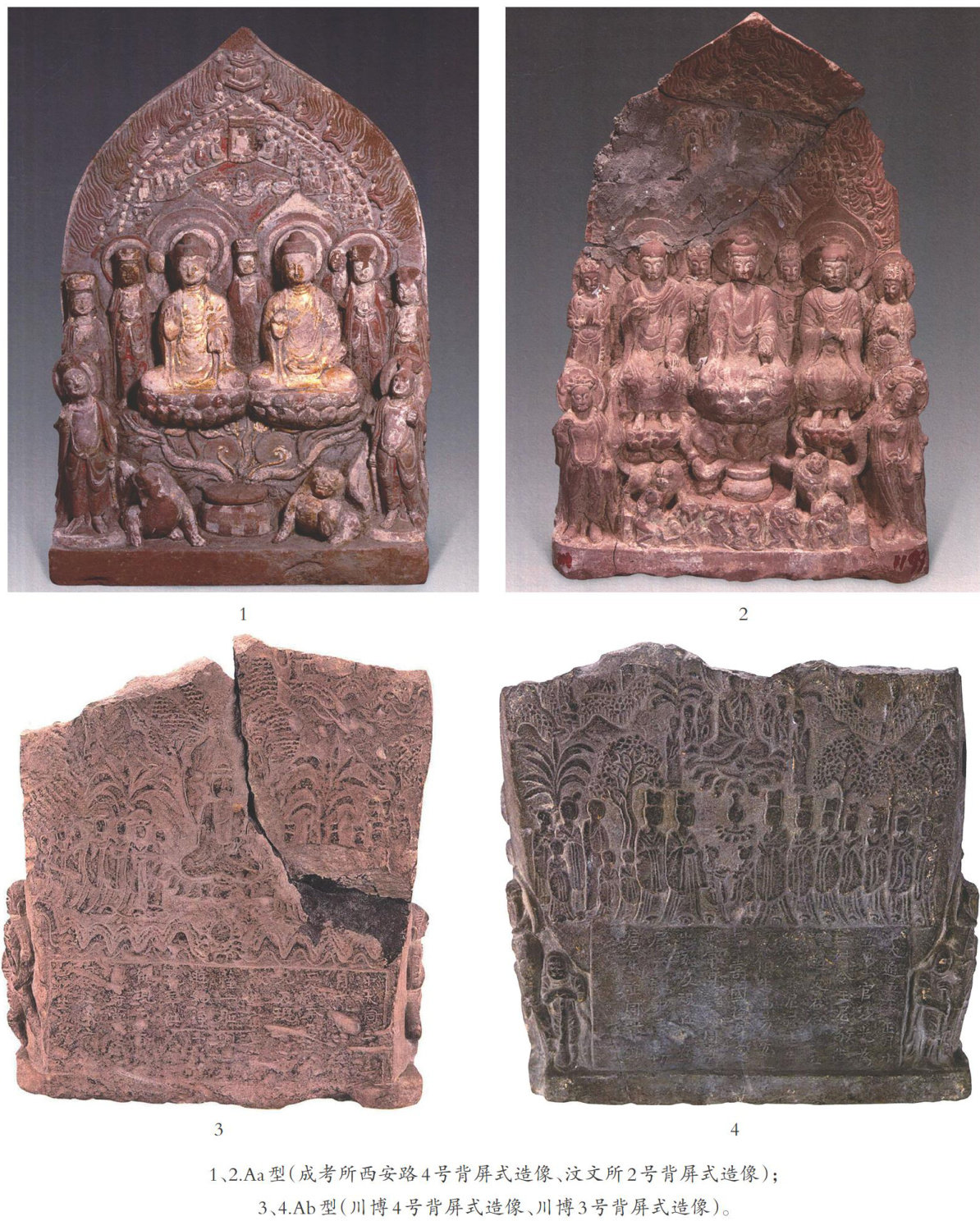 【摘要四川地区南北朝至唐代的佛教造像中发现较多瓶花图案,均是作为底座起到托举佛像的作用。对这些图案进行类型学分析,可知其约在南朝梁时期出现在造像碑或背屏式造像的主尊像下,隋末唐初开始出现在摩崖造像中,主要见于主尊+胁侍的造像组合中,中唐以后大量出现在多佛或千佛题材的摩崖造像中。通过与国内外同时期的瓶花材料进行比较研究,可知四川地区南朝时期的瓶花图案应直接来源于印度,但传入途径不一。其中Ab型平面化瓶花与江汉平原和长江下游地区属同一体系,可能是由海上丝绸之路经南京传入,而Aa型立体式瓶花则属另一体系,应有其他的传播路径。宋元以后,四川地区瓶花图案在发展过程中与国内文化融合交流,不断本土化、世俗化,逐渐成为一种装饰性纹饰,被广泛应用于佛造像和墓葬装饰中。