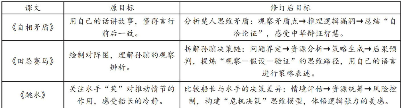 [摘要]教学目标的精准确立是实施单元结构化教学的重要抓手,教师要明确单元目标对于贯穿、整合单元教学的重要价值,针对教学实践过程中教学目标确立时存在的“知识碎片,遮蔽核心”“单篇孤立,弱化关联”“表述虚化,难测素养”等问题,采取将核心素养四维度融入单元目标,实现从知识碎片到素养聚合的转型;以“思维发展”为轴构建单篇目标进阶序列,强化单元内语言实践、文化理解与思辨能力的结构化联动;通过精准动词替代模糊表述,结合行为条件与评价标准,实现“教一学一评”一体化落地,推动学生从文本理解走向现实迁移,真正实现“用课文教素养”的结构化转型。