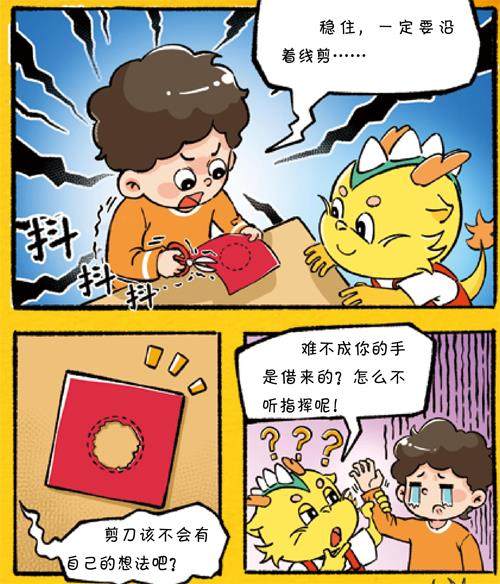 为什么安奇奇初学剪纸时拿剪刀的手会抖?其实,在我们初次学习或运用某项技能的时候,这种情况常常出现。这背后的原因还得从我们大脑里的“通信系统”说起。 当我们剪纸时,大脑要向手指肌肉发出“移动”“用力”等精确指令。 这些信号通过我们的神经细胞—神经元传递。 在初学剪纸的阶段,神经元的信号传递速度还不够快,也不够准确,可能导致手部抖动,剪出的线条歪歪扭扭。 在逐渐熟练掌握技巧的过程中,神经元的轴
