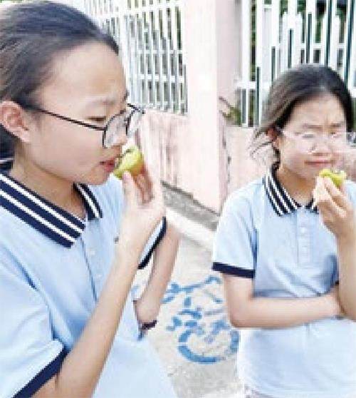 这天,我们将刚买的猕猴桃分享给朋友。切开猕猴桃,只见果肉还泛着白。一口咬下去,酸味直冲鼻腔,没过几秒,整个舌头都发紧、发麻。原来,猕猴桃还没熟!我们赶紧吐掉果肉,猛喝了两大口温水才缓过来。 看着剩下的硬邦邦的猕猴桃,我们开始思考:如何才能科学地给猕猴桃催熟呢? 通过查找资料,我们找到了几种催熟方法,并将这些方法从1 到4 依次编号。 我们用了一周时间对使用不同催熟方法的猕猴桃进行观察与记录,