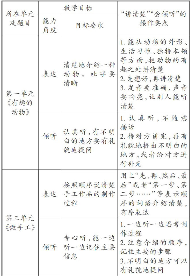 [摘要]修订版统编语文教材二年级上册口语交际的内容更加贴近儿童生活:注重交际情境的真实性、符合儿童交际的需求、为儿童提供了有效的支架。在口语交际教学中,教师要基于课标、教材、学情,确立导向性教学目标;要围绕目标,通过设置前置性任务、创设任务情境、提供学习支架等途径,引导学生积累表达素材、产生表达动机、习得方法和语言;要根据目标设计评价量表,引导学生展开自评、互评,进行自我监控、调整,获得口语交际能力的不断发展,更好地进行人际沟通和社会交往。