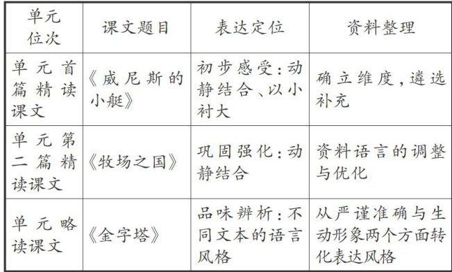 [摘要]基于语文新课标的课程属性定位,统编语文教材习作单元精读课文的教学,应区别于常规单元中的精读课文,帮助学生掌握本单元习作的基本知识和技能,促进学生表达素养的发展。教师可以设置逐层进阶的阅读维度,提取表达知识;依托真实客观的学情基础,促进经验积累;对应从读到写的运用迁移,生长表达素养,引导学生从精读品味过渡到单元习作,凸显精读课文的支架性作用,让学生学有范例、练有参考。