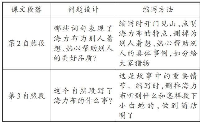 [摘要]培养学生运用语言文字的能力,提高学生的文化品位和审美情趣,发展学生的人文素养,是义务教育阶段语文学科教学的基本要求。统编语文教材很重视读写结合,而缩写训练是加强读写结合的重要一环。针对缩写训练,教材提供了具体的方法指导。以五年级上册第三单元《猎人海力布》为例,在教学过程中,教师要遵循“三个注重”——注重简短和简要、注重思路和设计、注重过程和方法,围绕缩写训练的目标指向,整体建构理解、设计和教学的结构框架,实现教材价值最大化。