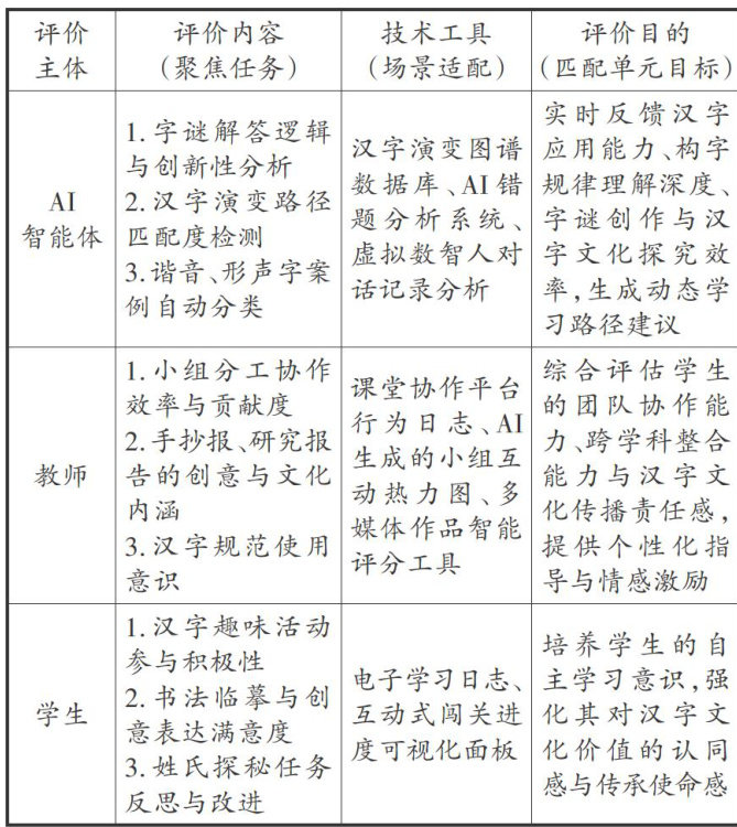 [摘要]人工智能技术为汉字文化传承提供了新契机。本文以“遨游汉字王国"跨学科学习为例,探讨人工智能如何赋能学生的全过程学习。在资料搜集、实践探究、成果展示、协同评价等环节深度应用人工智能技术,能够创新教与学的方式,提升学生的汉字文化探究能力、跨学科思维及创新素养,推动汉字的传承与创新。